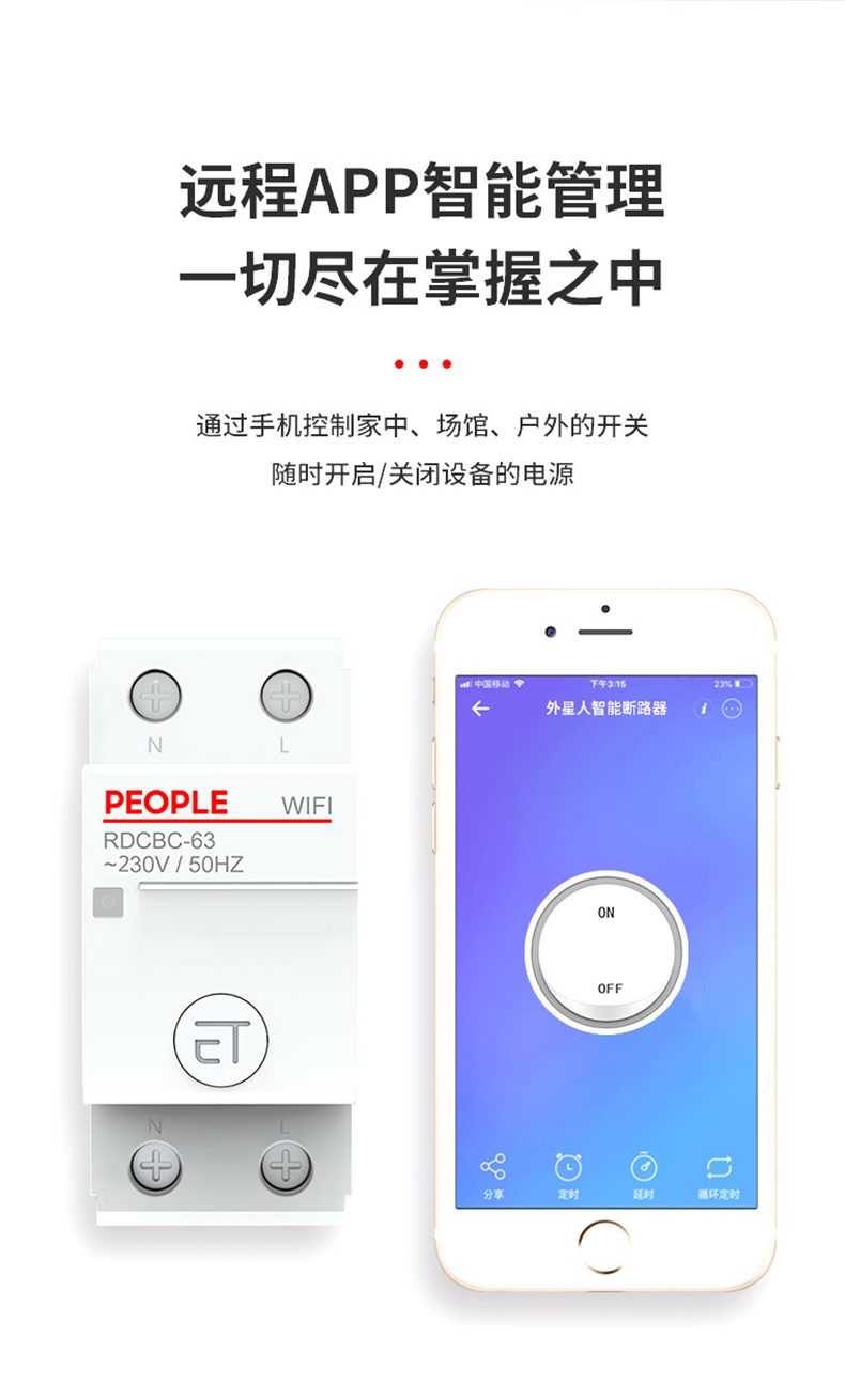 RDCBC-63節(jié)能智能無線控制斷路器(外星人WIFI型),切盡在掌握之中,通過手機控制家中、場館、戶外的開關(guān),隨時開戶/關(guān)閉設(shè)備的電源。