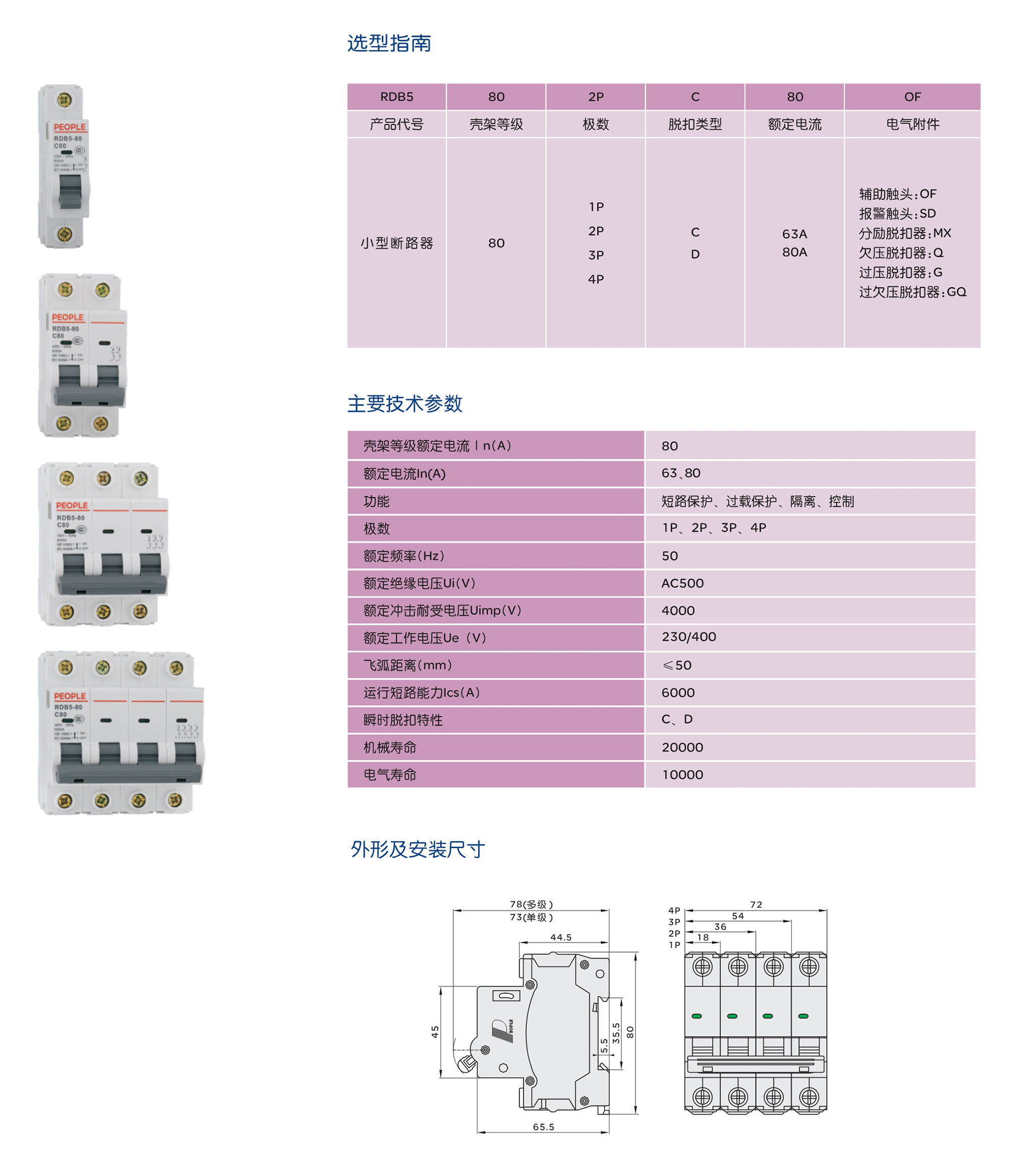 RDB5-80小型斷路器(以下簡稱斷路器),主要用于交流50Hz(或60Hz),額定工作電壓至400V,額定電流至80A額定短路分?jǐn)嗄芰Σ怀^6000A的保護(hù)配電線路中,作為線路不頻繁接通、分?jǐn)嗪娃D(zhuǎn)換之用,具有過載、短路保護(hù)功能。 產(chǎn)品符合: GB/T 10963.1 標(biāo)準(zhǔn)。