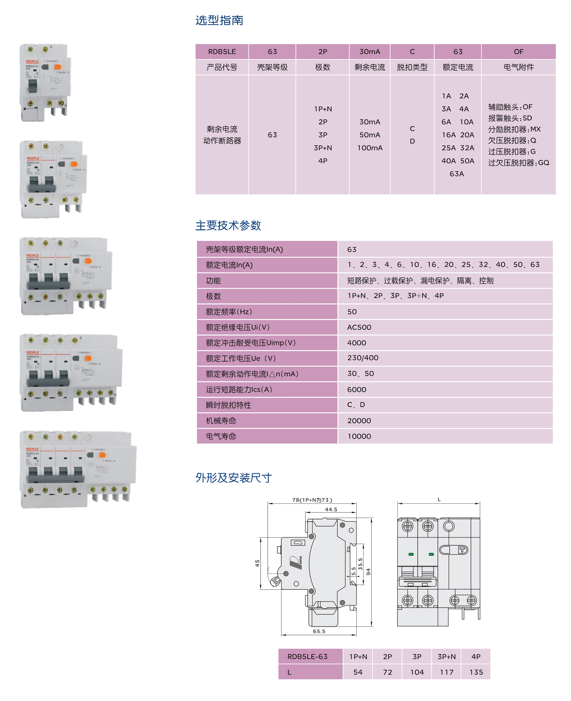 RDB5LE-63系列剩余電流動(dòng)作斷路器