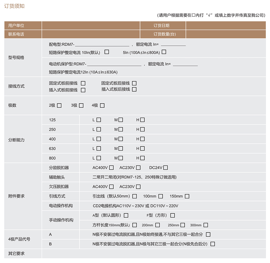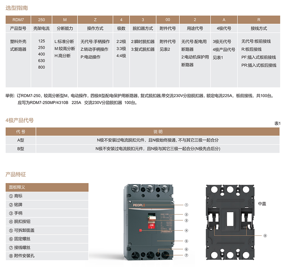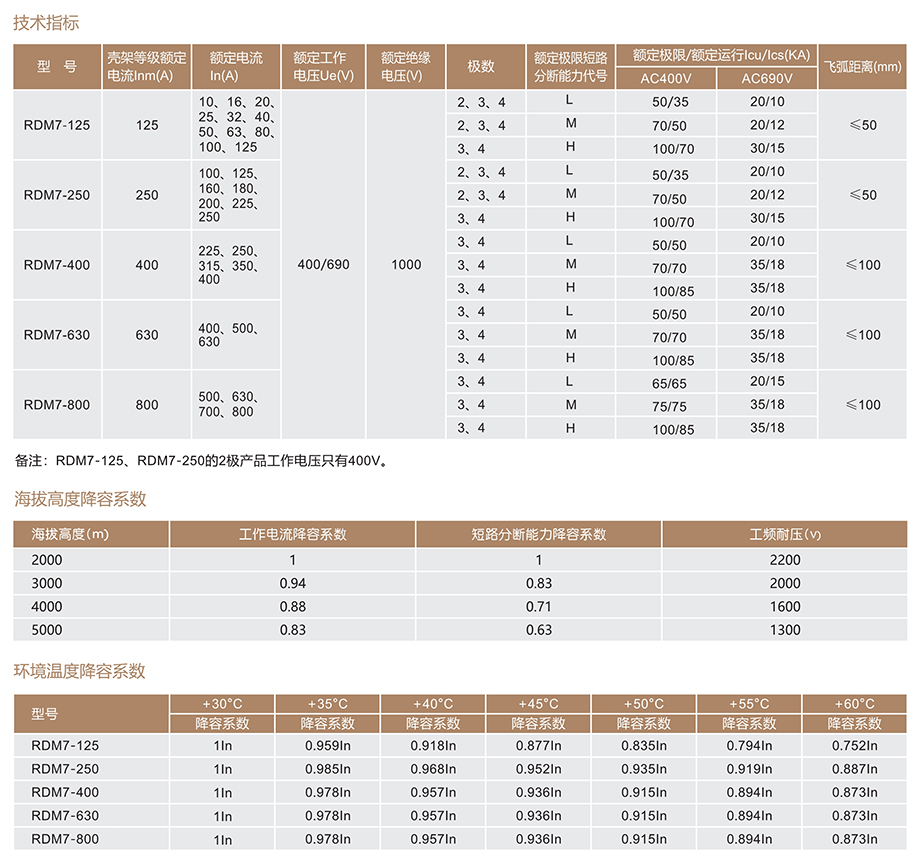 RDM7系列塑料外殼式斷路器適用于交流50Hz,額定絕緣電壓1000V,額定工作電壓690V及以下, 額定電流至800A以下的配電網(wǎng)絡中, 用來分配電能和保護線路及電源設備免受過載, 短路和欠電壓等故障的損壞。其中額定電流630A及以下的斷路器;亦可作為保護電動機之用。在正常情況下, 斷路器可分別作為線路的不頻繁轉換及電動機的不頻繁起動之用。配電用斷路器,在配電網(wǎng)絡中用來分配用電能且作為線路及電源設備的過載、短路和欠電壓保護。保護電動機用斷路器,在配電網(wǎng)絡中用作鼠籠型電動機的起動和運轉...