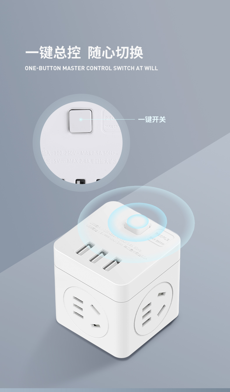 插座/充電兩不誤,小巧便捷易攜帶,USB智能配充,安全穩(wěn)定.