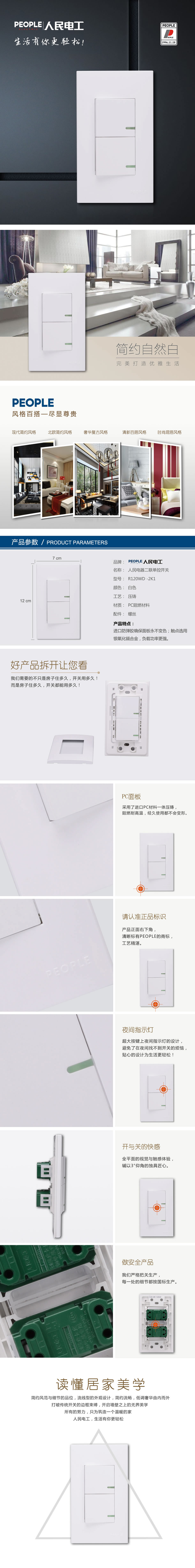 型號:R120WD-2K1 二聯(lián)單控開關(guān);顏色:白色