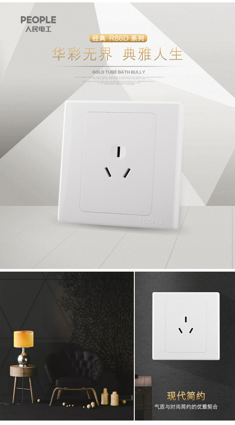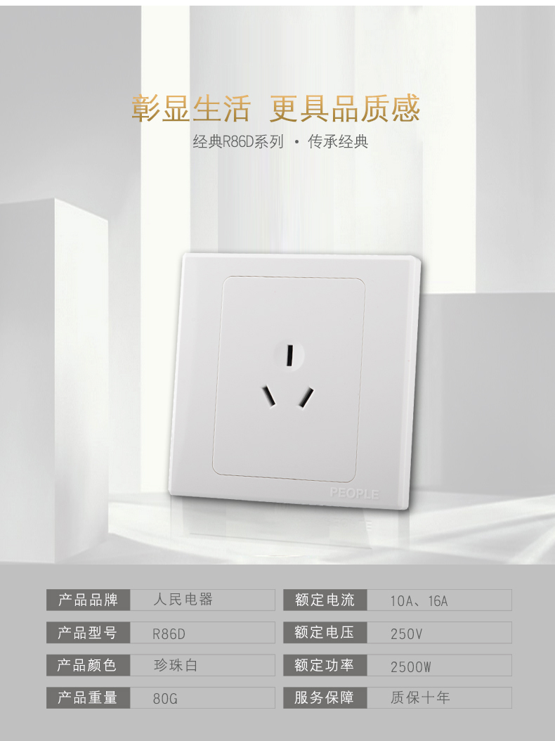 型號:R86D-Z(10A)、R86D-S(16A) 三極插座;顏色:乳白