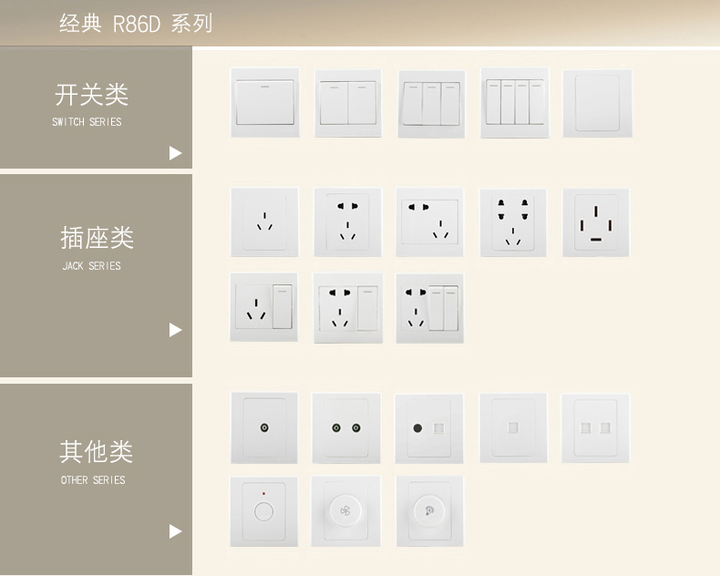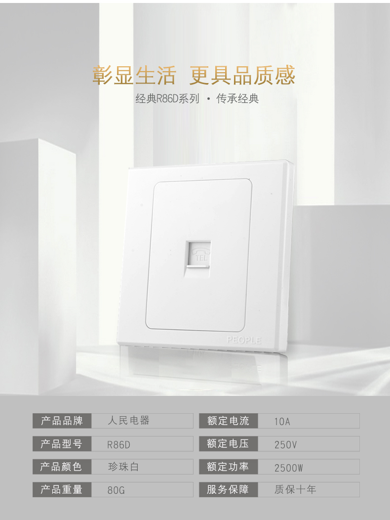 型號:R86D-T2 一聯(lián)電話插座;顏色:乳白