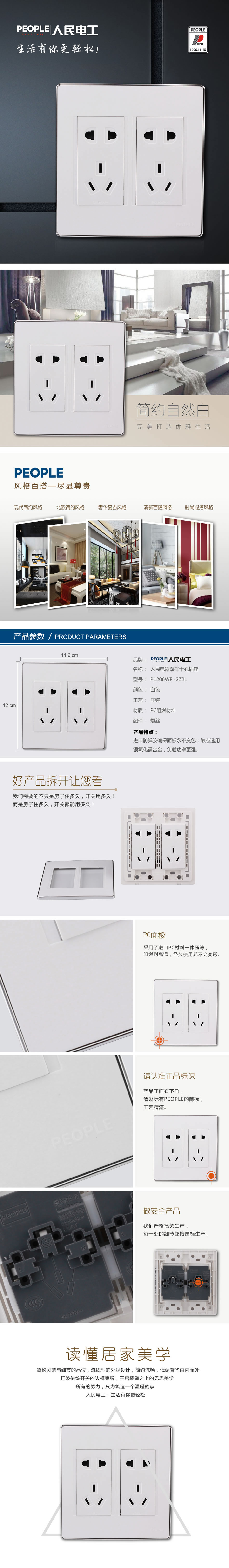 型號(hào):R1206WF-2Z2L 雙排十孔插座;顏色:白色