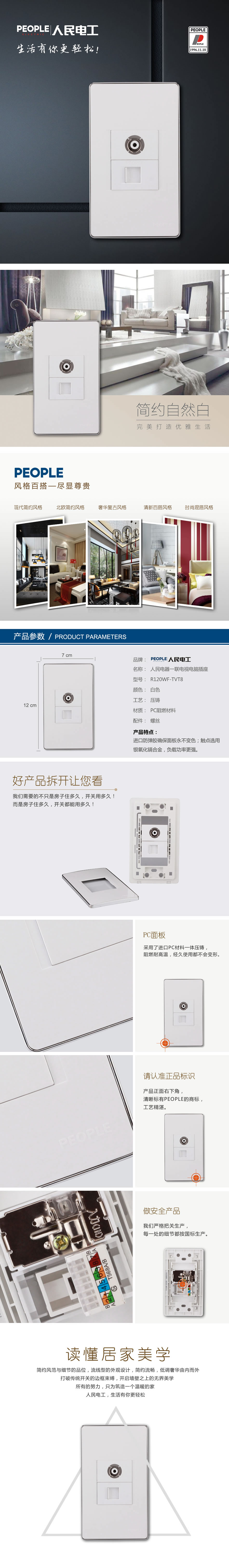 型號:R120WF-TVT8 一聯(lián)電視電腦插座;顏色:白色