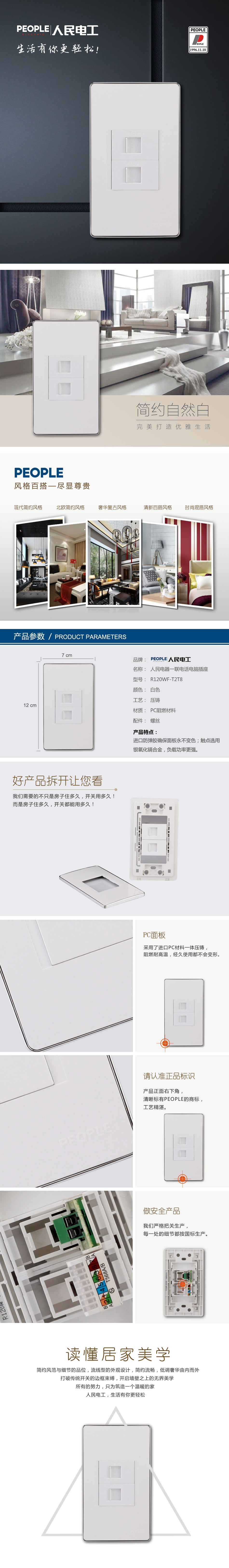 型號:R120WF-T2T8 一聯(lián)電話電腦插座;顏色:白色