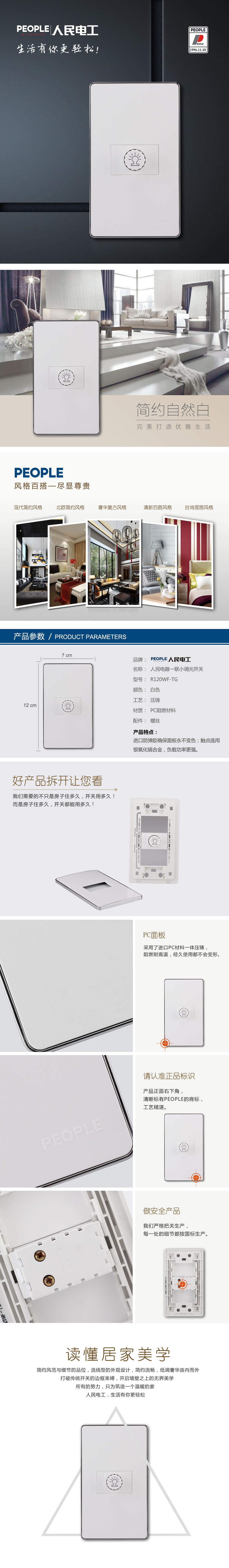 型號(hào):R120WF-TG 一聯(lián)小調(diào)光開(kāi)關(guān);顏色:白色