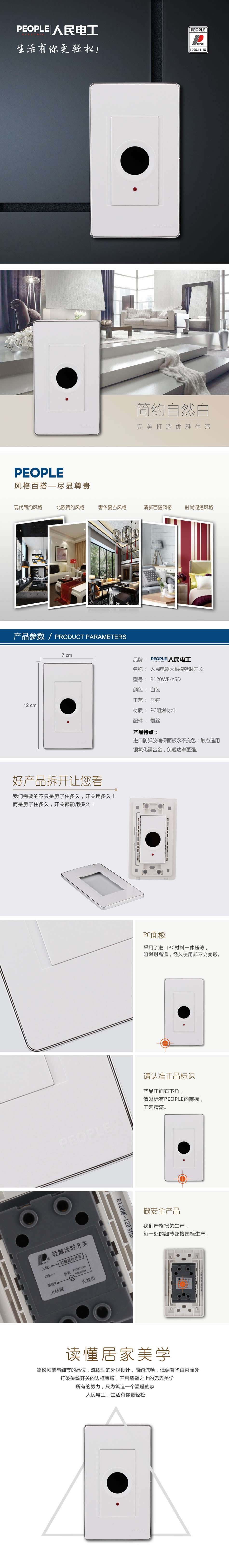 型號(hào):R120WF-YSD 大觸摸延時(shí)開(kāi)關(guān);顏色:白色