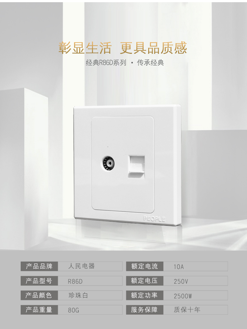 型號(hào):R86D-TVT2(二芯電話)、R86D-TVT8(電腦) 電視電腦插座;顏色:乳白
