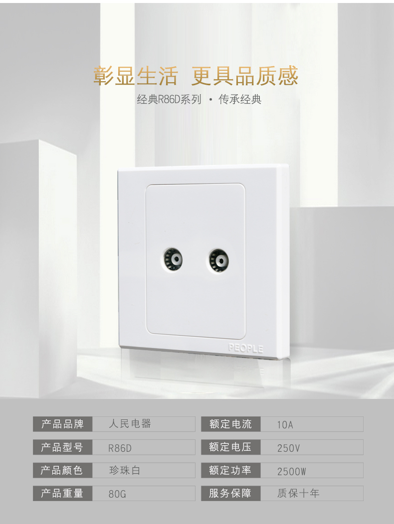 型號:R86D-2TV 二聯(lián)電視插座;顏色:乳白