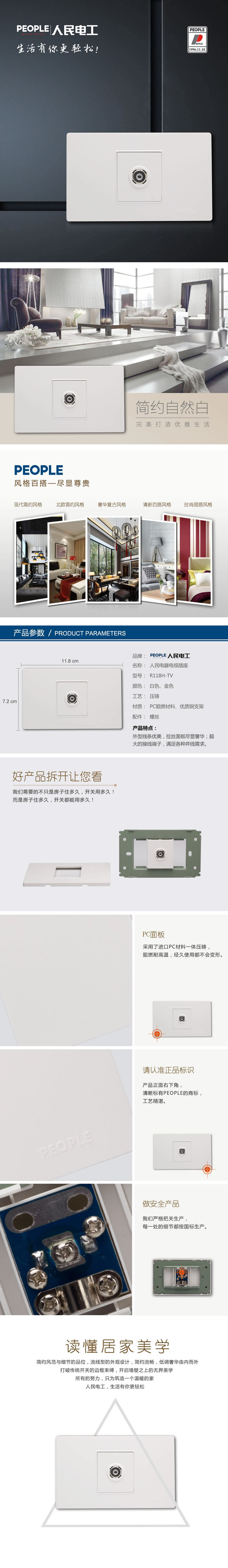 型號:R118H-TV 一聯(lián)電視插座;顏色:白色,金色