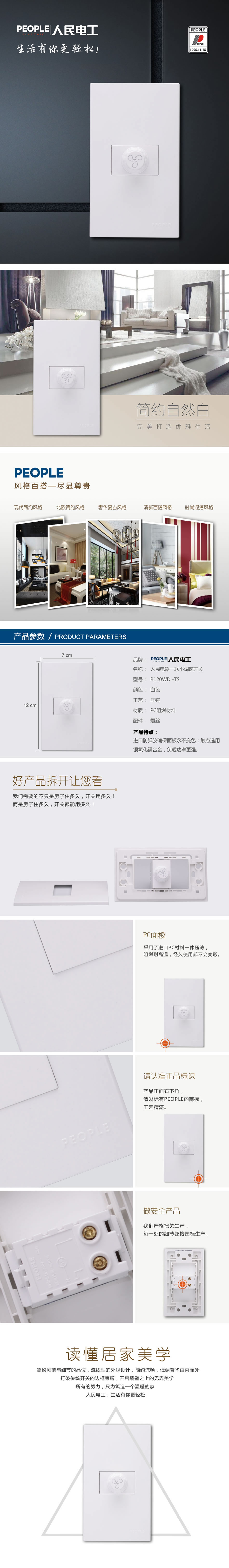 型號:R120WD-TS 一聯(lián)小調速開關;顏色:白色