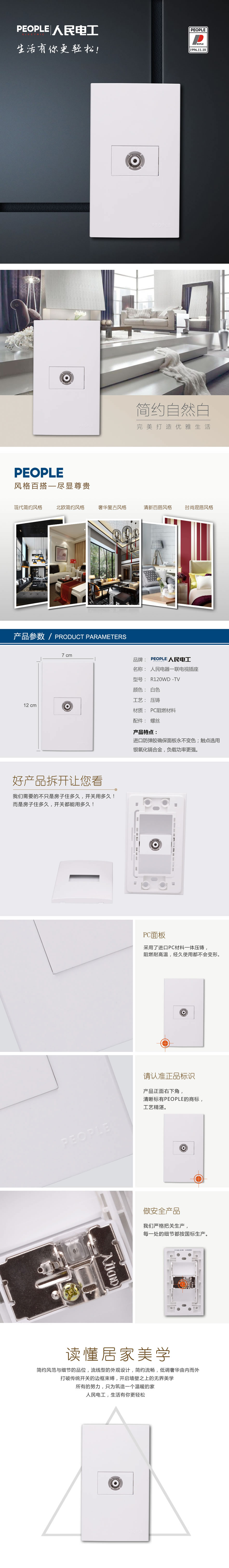 型號(hào):R120WD-TV 一聯(lián)電視插座;顏色:白色