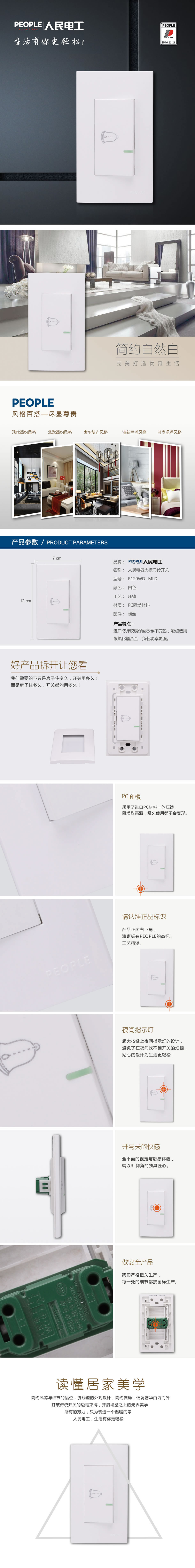 型號(hào):R120WD-MLD 大板門鈴開關(guān);顏色:白色