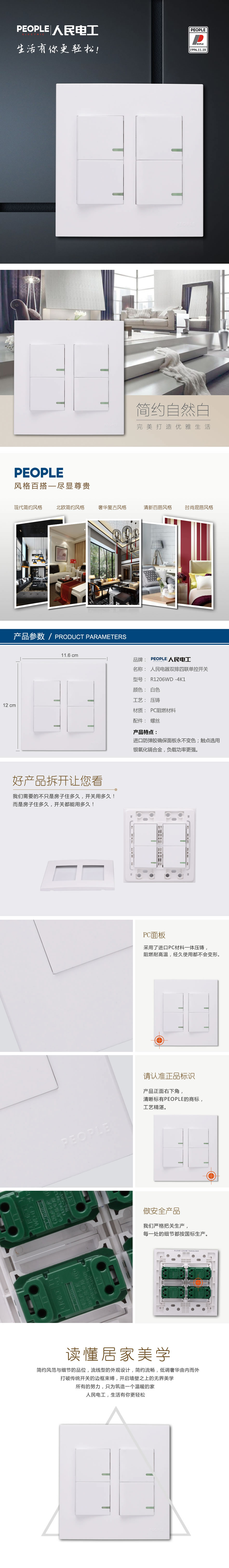 型號:R120WD-4K1 雙排四聯(lián)單控開關(guān);顏色:白色