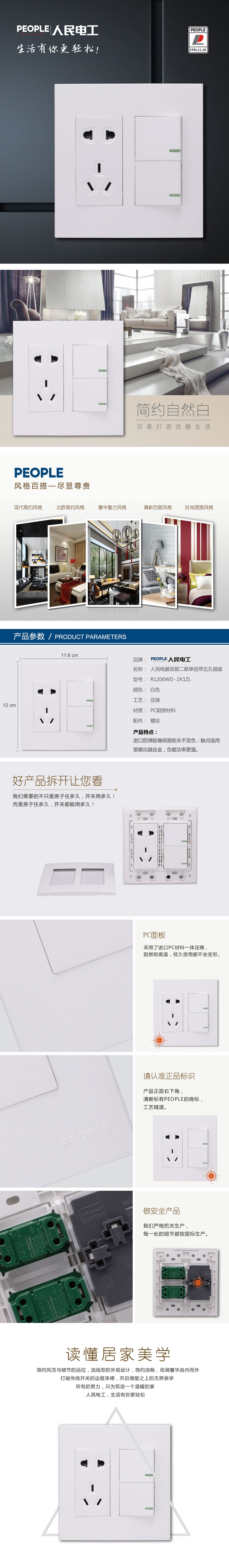 型號:R120WD-2K1ZL 雙排二聯(lián)單控帶五孔插座;顏色:白色