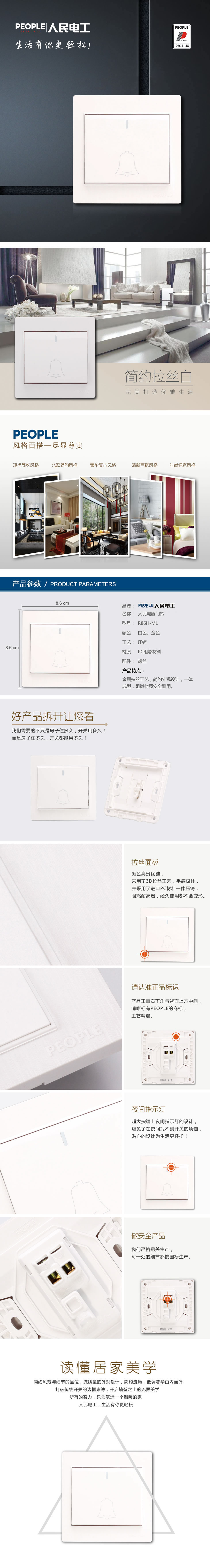 型號:R86H-ML 門鈴開關(guān);顏色:白色、金色