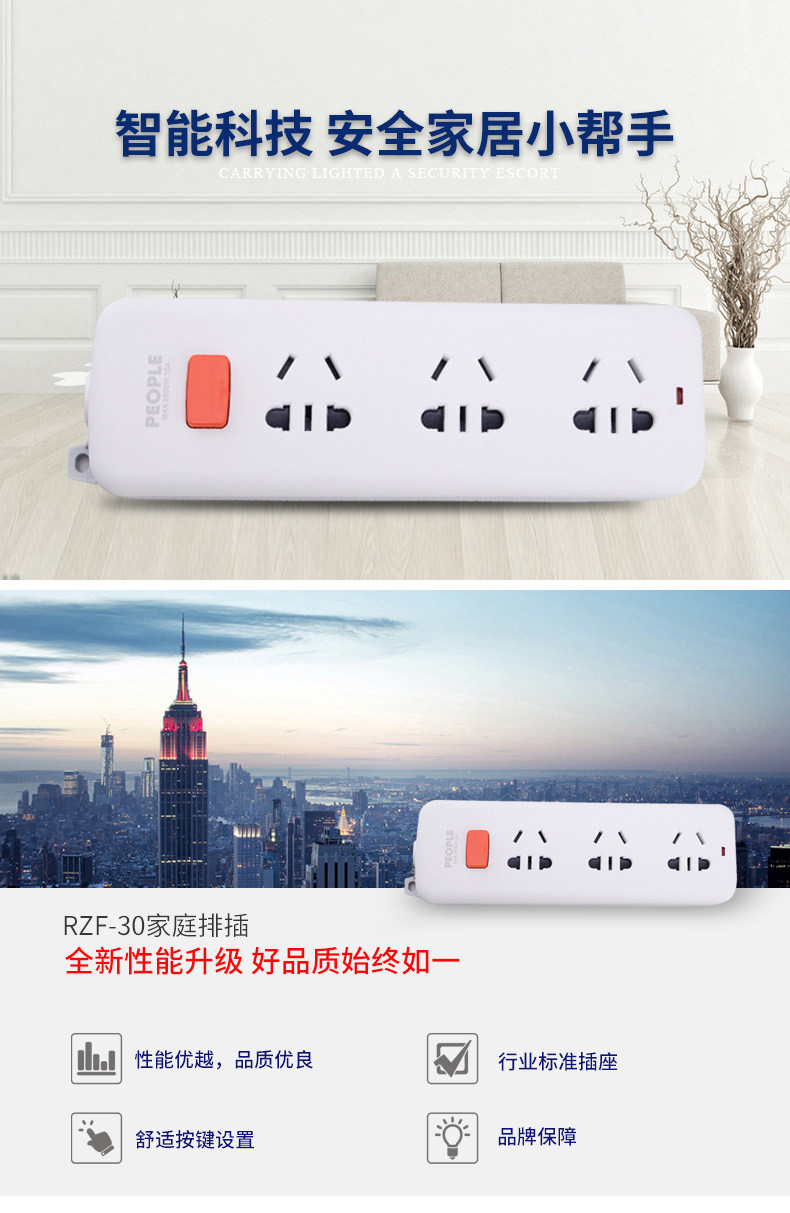 RZF-30家庭排插適用于:家裝、寫字樓、家庭等場所。