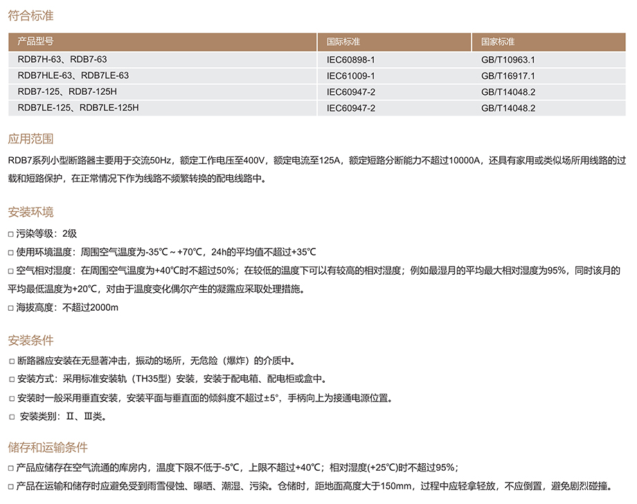 RDB7系列小型斷路器主要用于交流50Hz 額定工作電壓至400V 額定電流至125A 額定短路分?jǐn)嗄芰Σ怀^(guò)10000A 還具有家用或類似場(chǎng)所用線路的過(guò)載和短路保護(hù),在正常情況下作為線路不頻繁轉(zhuǎn)換的配電線路中。