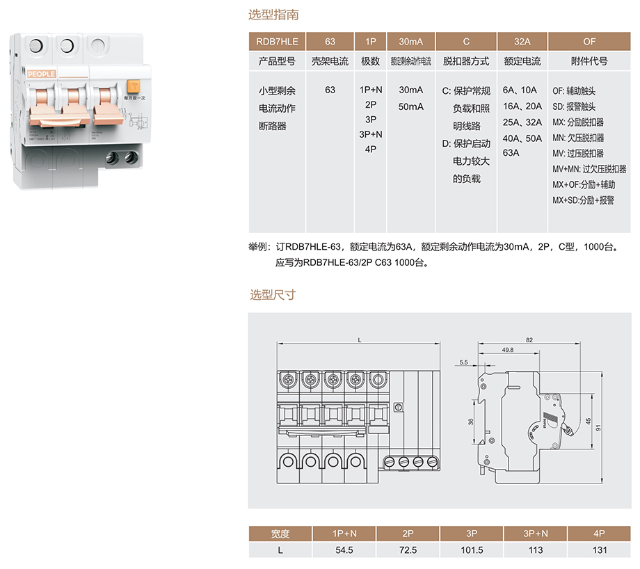 RDB7HLE-63系列小型剩余電流動作斷路器