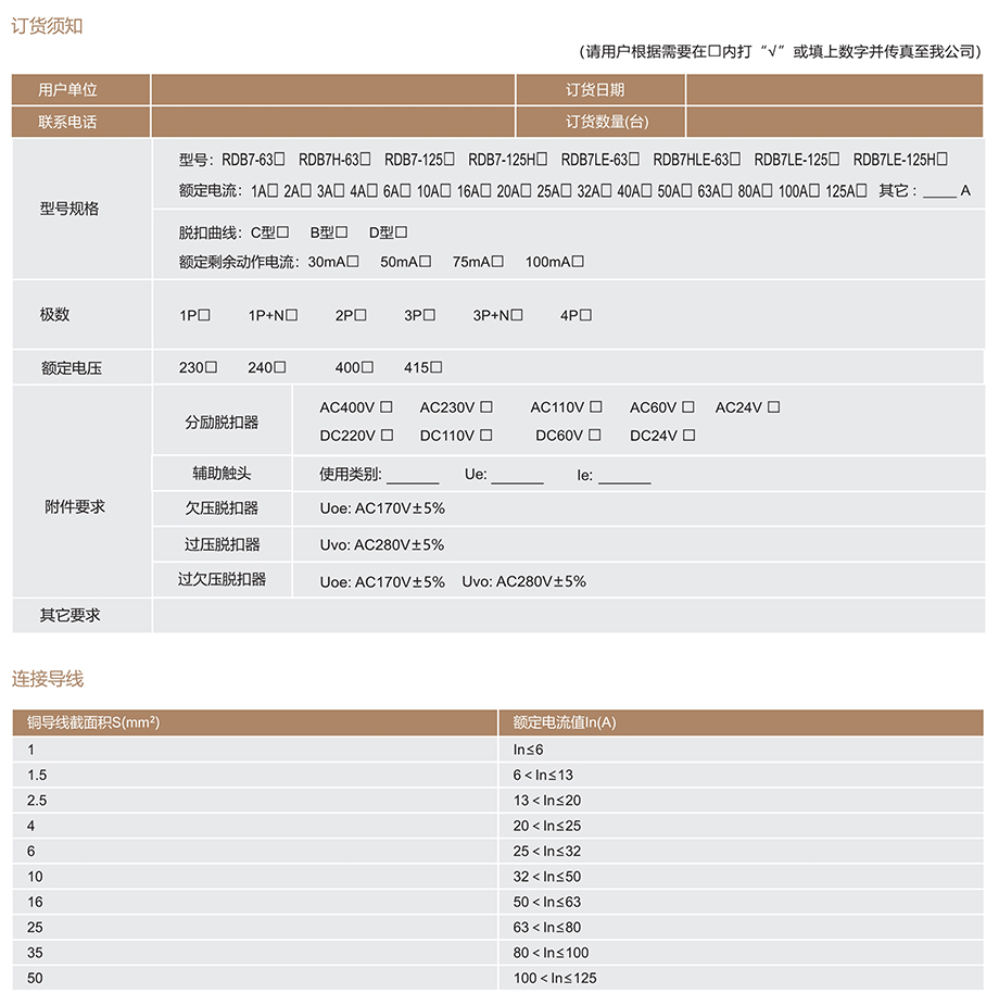 RDB7系列小型斷路器主要用于交流50Hz 額定工作電壓至400V 額定電流至125A 額定短路分斷能力不超過10000A 還具有家用或類似場所用線路的過載和短路保護,在正常情況下作為線路不頻繁轉換的配電線路中。