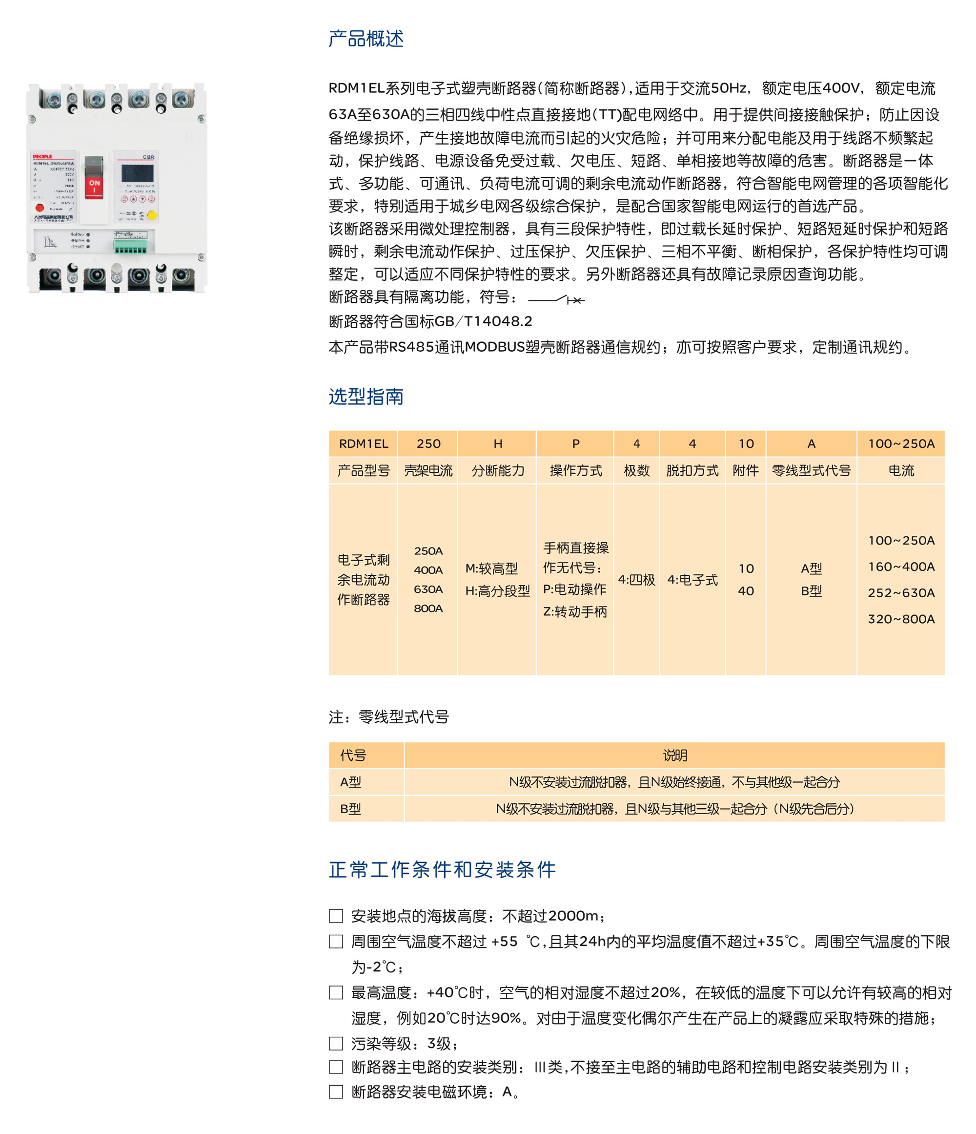 RDM1EL系列電子式塑殼斷路器(簡(jiǎn)稱斷路器),適用于交流50Hz,額定電壓400V,額定電流63A至630A的三相四線中性點(diǎn)直接接地(TT)配電網(wǎng)絡(luò)中。用于提供間接接觸保護(hù);防止因設(shè)備絕緣損壞,產(chǎn)生接地故障電流而引起的火災(zāi)危險(xiǎn);并可用來分配電能及用于線路不頻繁起動(dòng),保護(hù)線路、電源設(shè)備免受過載、欠電壓、短路、單相接地等故障的危害。斷路器是一體式、多功能、可通訊、負(fù)荷電流可調(diào)的剩余電流動(dòng)作斷路器,符合智能電網(wǎng)管理的各項(xiàng)智能化要求,特別適用于城鄉(xiāng)電網(wǎng)各級(jí)綜合保護(hù),是配合國家智能電網(wǎng)運(yùn)行的首...