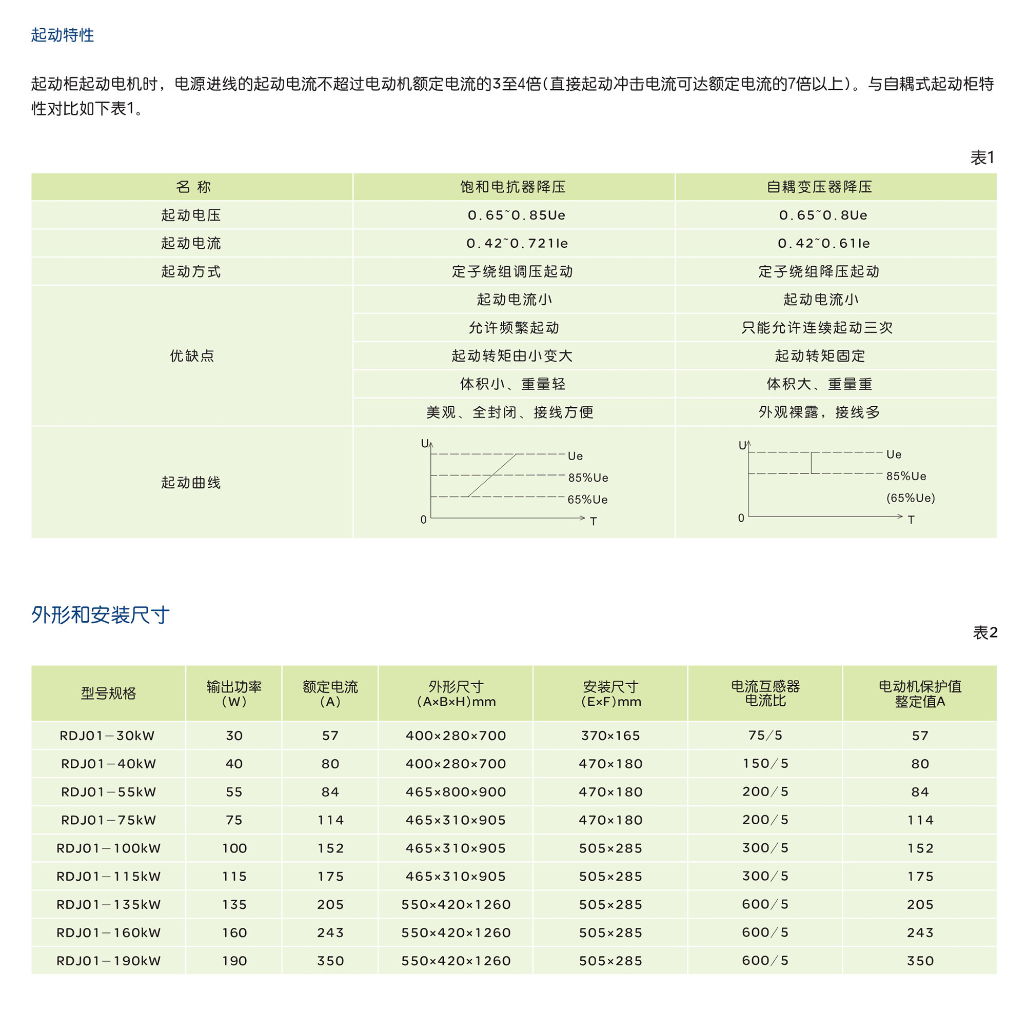 RDJ01系列電抗式電動機起動柜,適用于50Hz/60Hz、380V、660V功率至190kW的三相鼠籠式電動機作降壓起動之用。具有軟啟動功能,采用飽和電抗器降壓的方法以減輕當電動機起動時對輸入電網(wǎng)的干擾及影響,減輕由于起動電壓的跳變對電動機的破壞與沖擊,更適用于重載電機。 本產(chǎn)品符合:GB/T14048.4和JB/T8752標準。