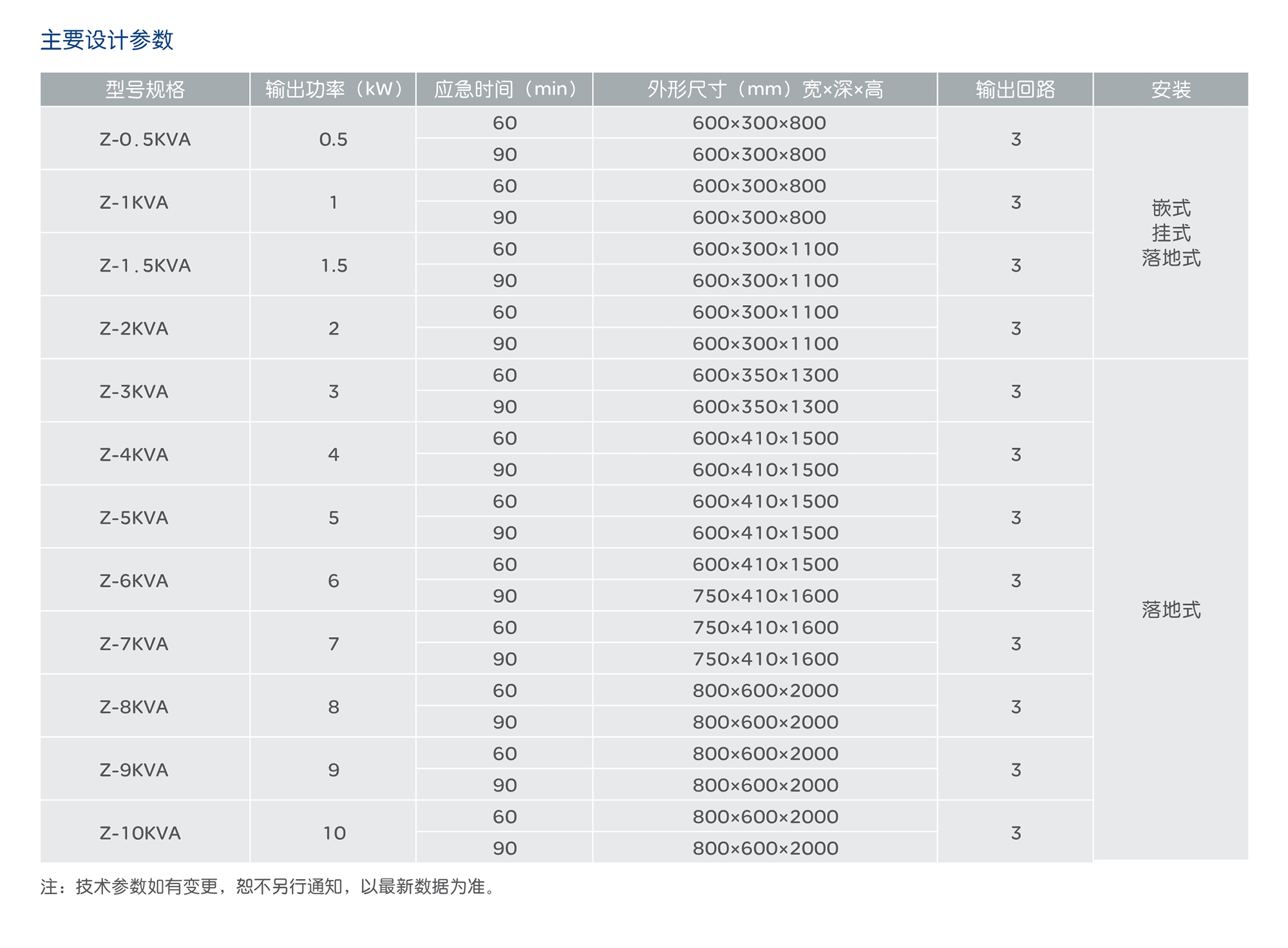 EPS應(yīng)急電源規(guī)格很多,按輸入方式可分為單相220V和三相380V按輸出方式可分為單相、三相及單、三相混合輸出,安裝形式有落地式、壁掛式和嵌墻式三種,容量有從0.5KW到/800KW各個(gè)級(jí)別,按服...