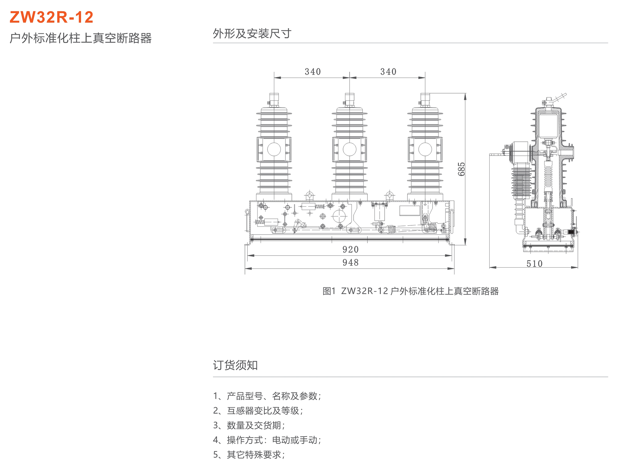 ZW32R-12戶外標準化柱上真空斷路器