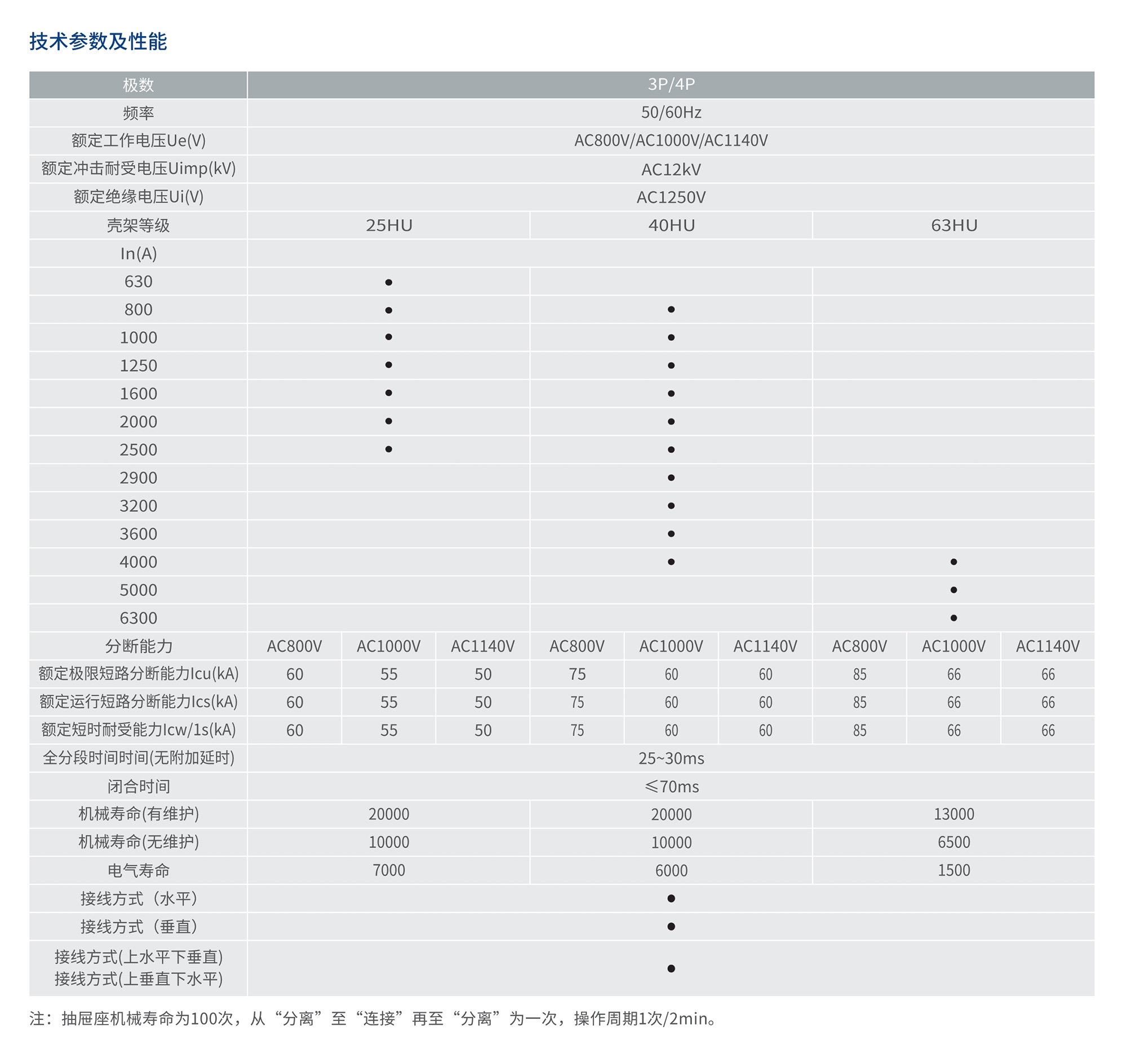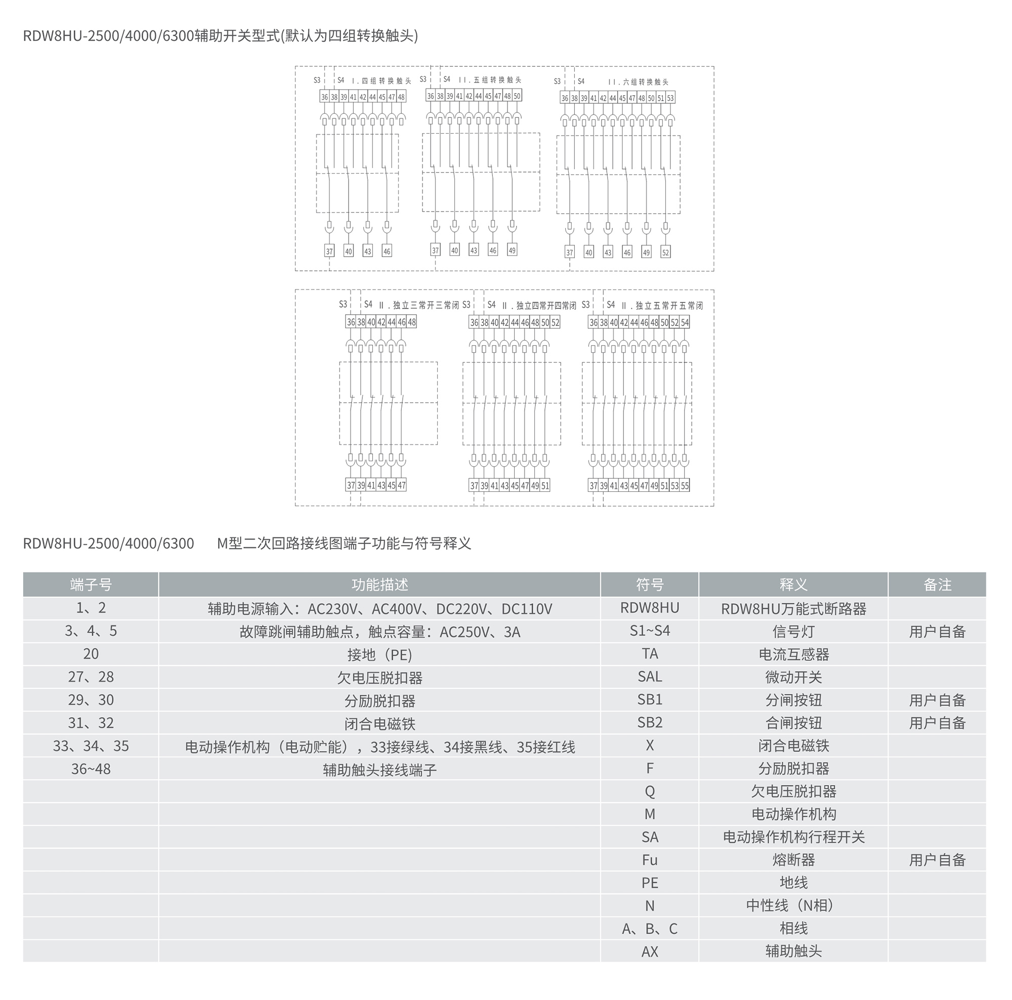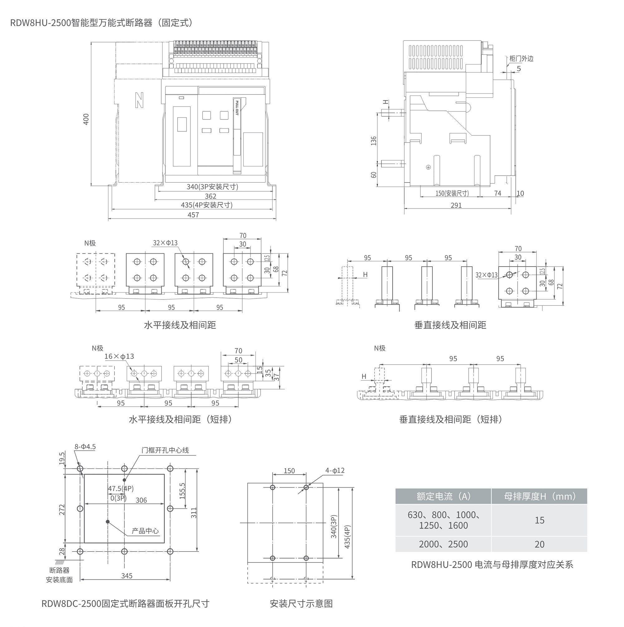 RDW8HU系列萬能式斷路器(以下簡稱斷路器),適用于直流,額定電流630A~6300A、額定絕緣電壓1250V、額定工作電壓為AC800V、AC1000V、AC1140V的配電網(wǎng)絡中。用來分配電能和保護線路及電源設備免受過載、欠電壓、短路、單相接地等故障的危害,同時還具有隔離功能。斷路器具有多種保護功能,在做到高精確的選擇性保護的同時,還可以避免不必要的停電,提高了供電系統(tǒng)的可靠性、安全性。