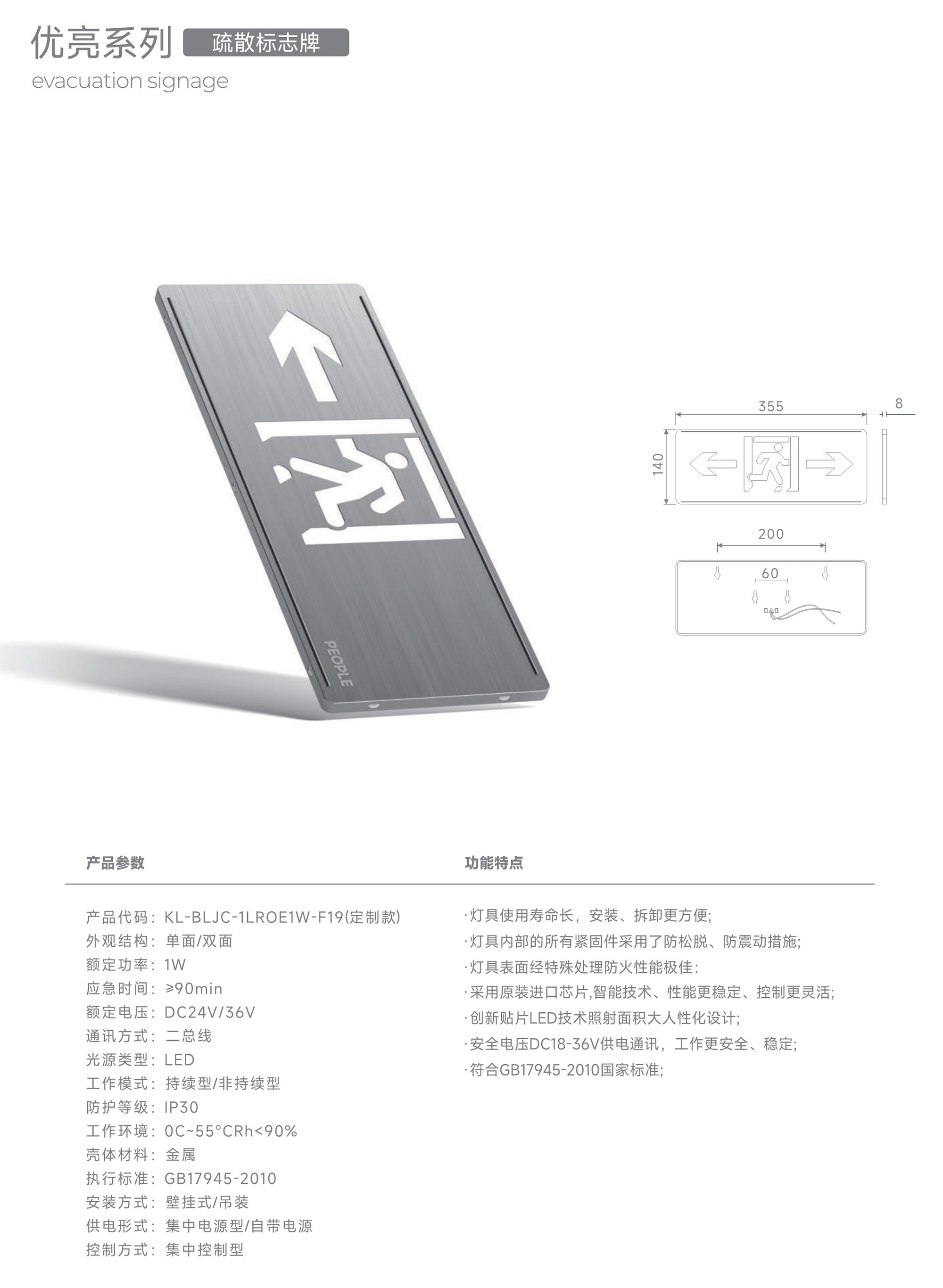 優(yōu)亮系列疏散標(biāo)志牌 KL-BLJC-1LROE1W-F19