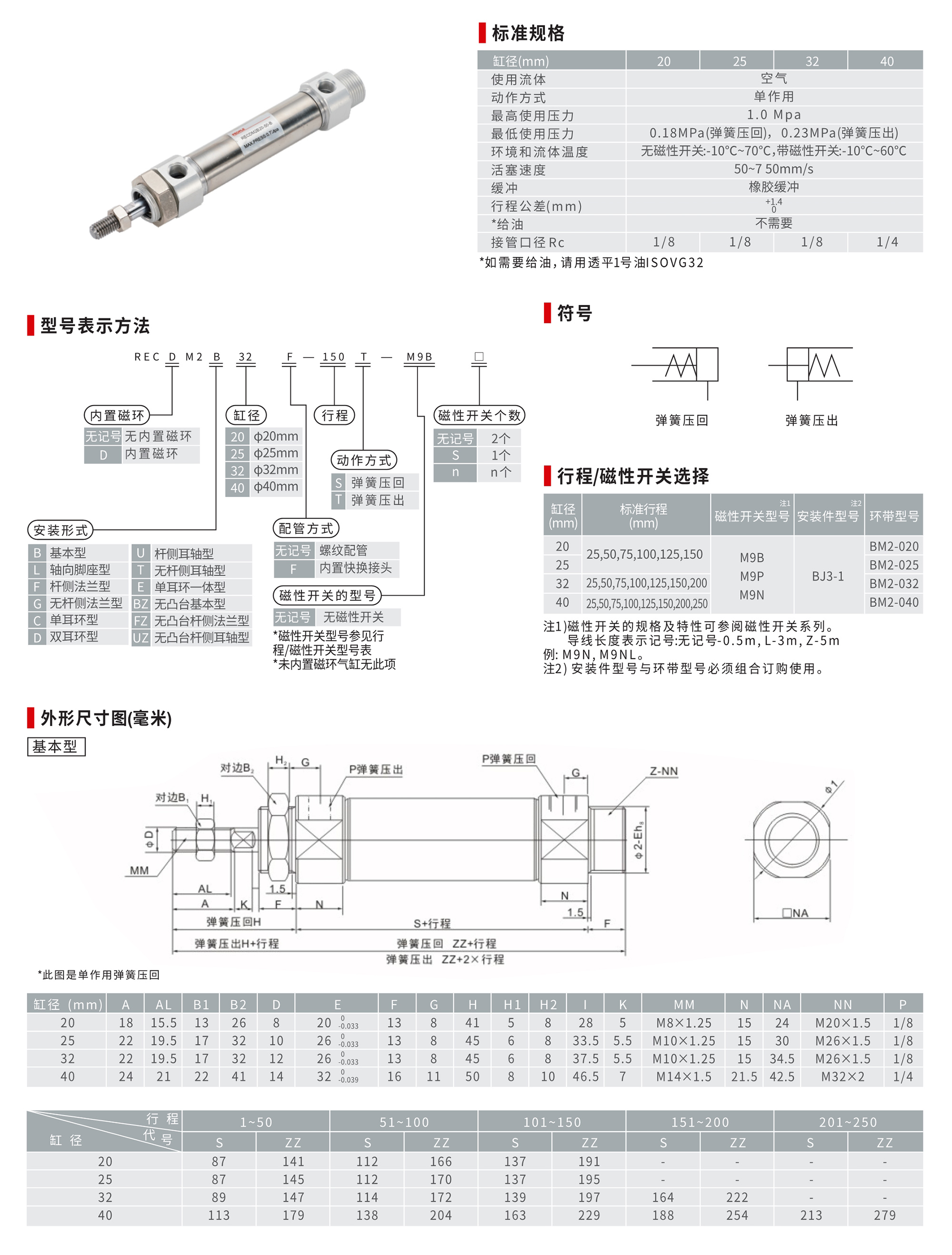 RECM2系列不銹鋼(單作用)迷你氣缸