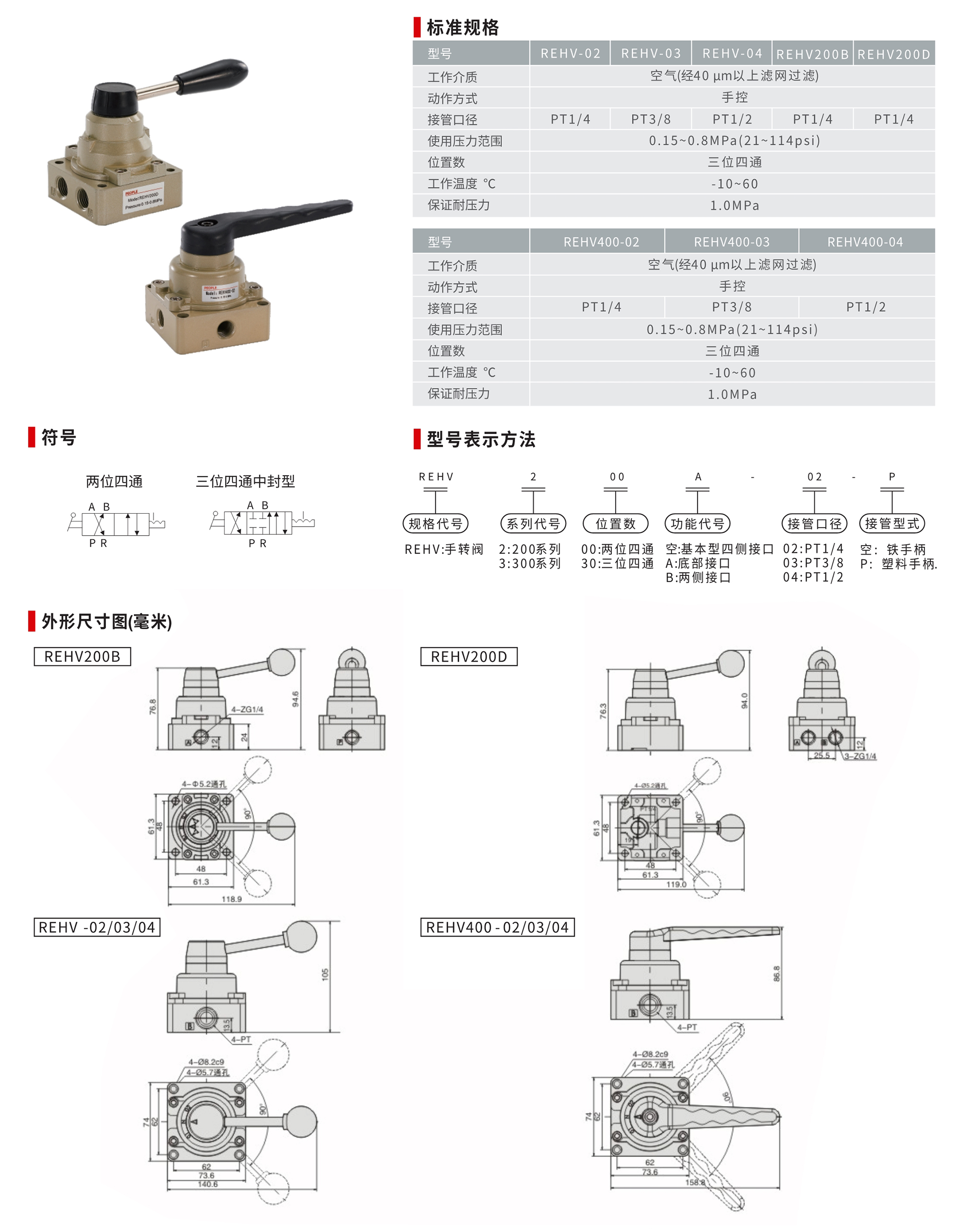 > REHV系列手轉(zhuǎn)閥(四口二位、四口三位)