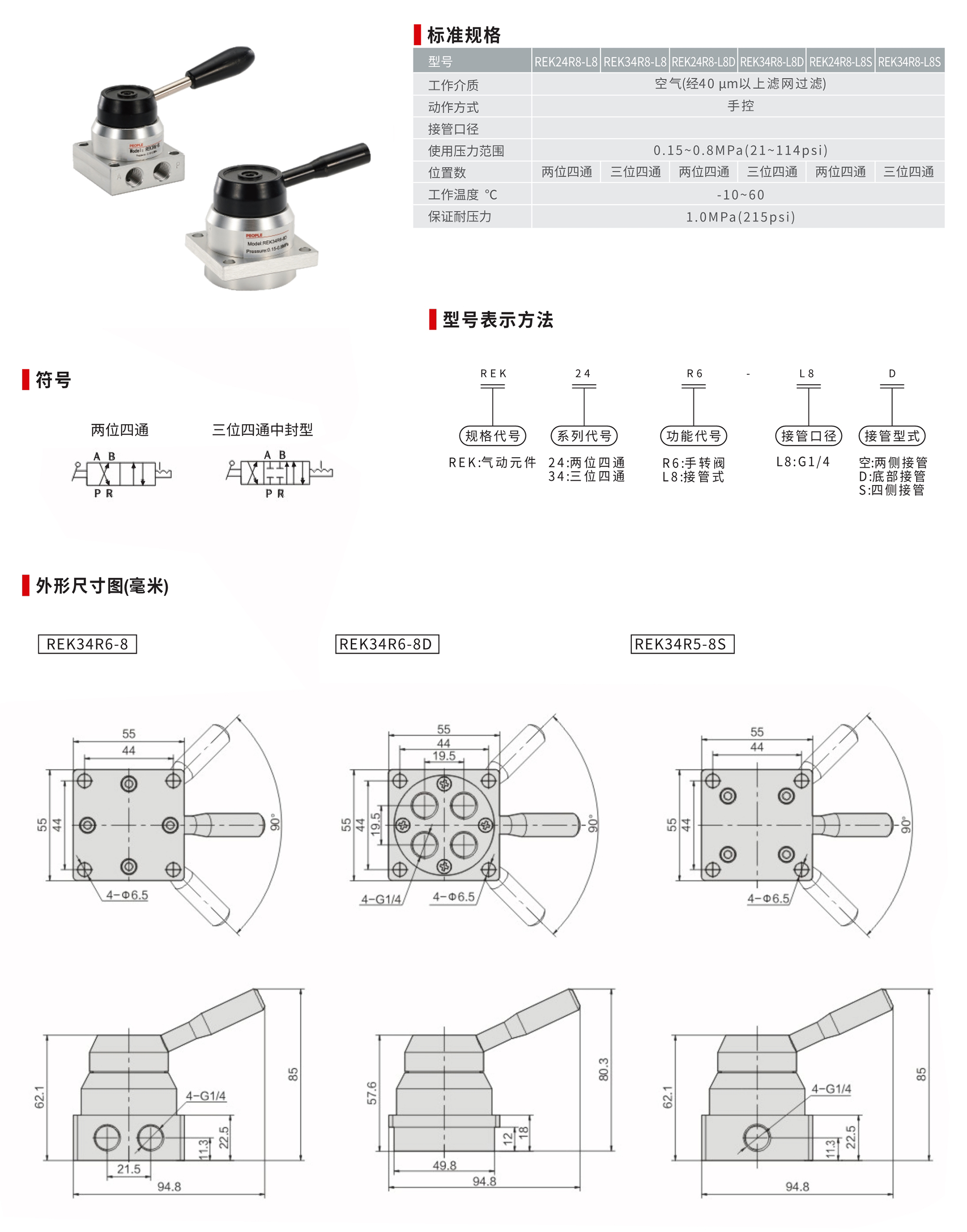 > REK24/REK34系列手轉(zhuǎn)閥(四口二位、四口三位)