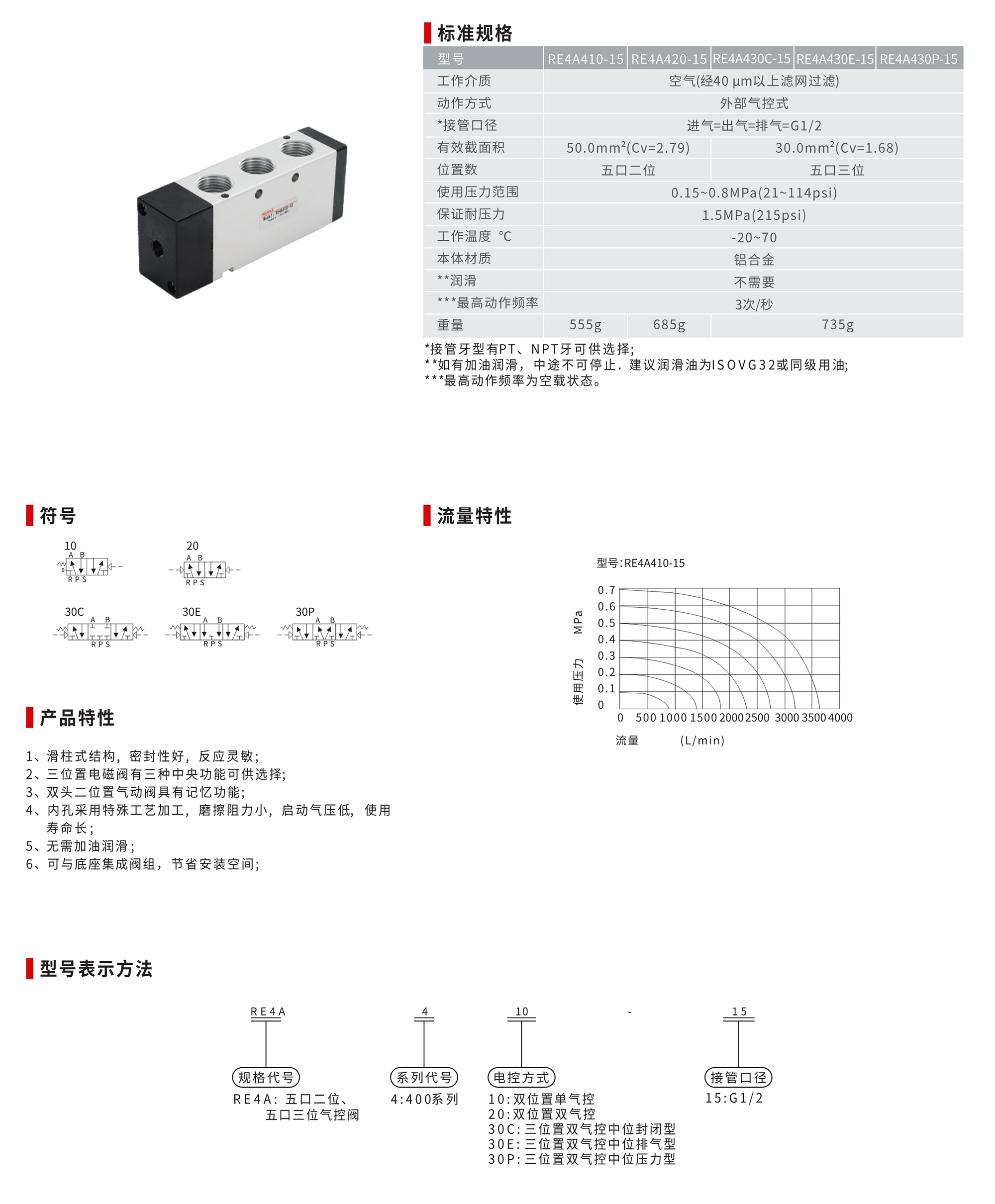 > RE4A400系列氣控閥(五口二位、五口三位)