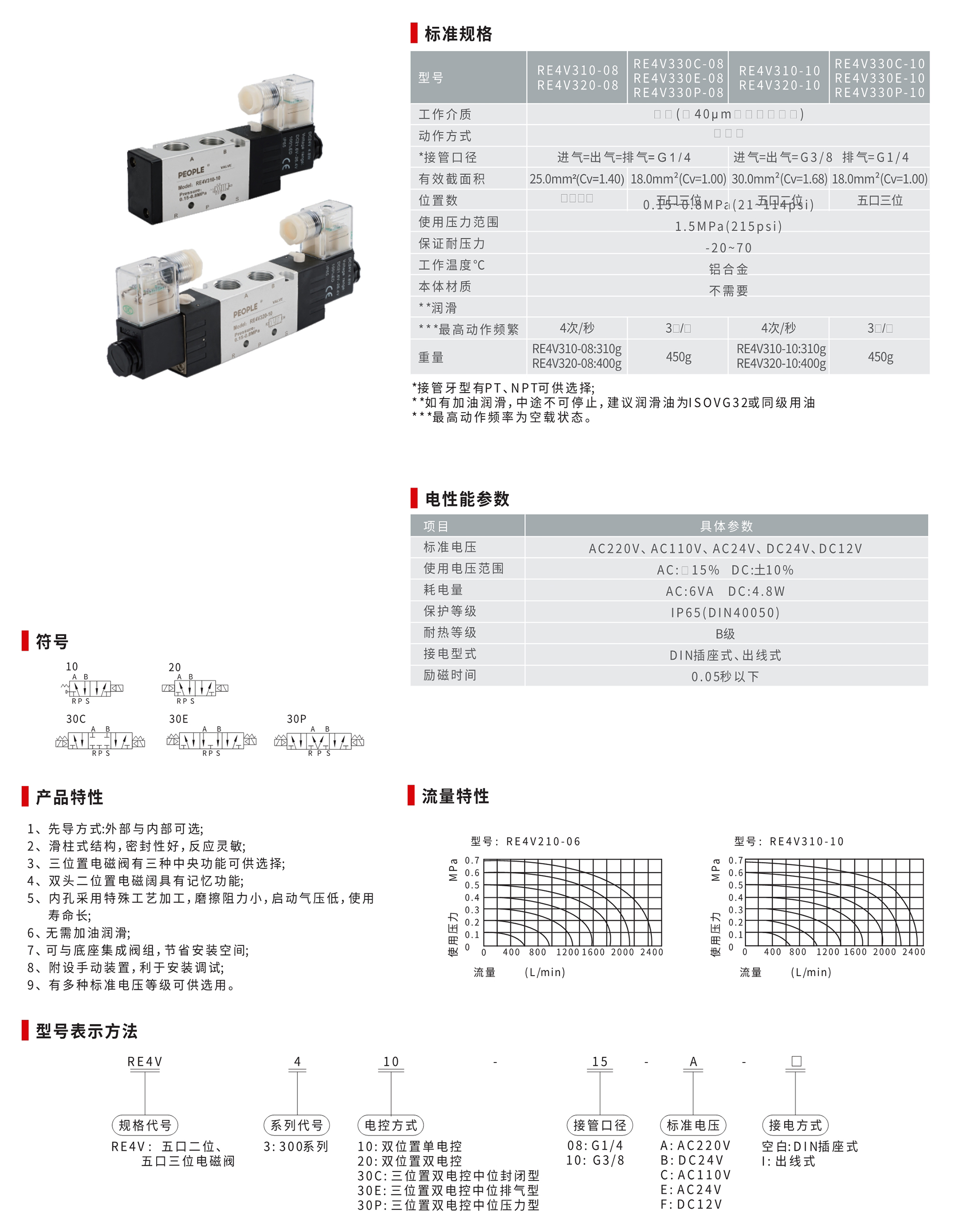 > RE4V300系列電磁閥(五口二位、五口三位)
