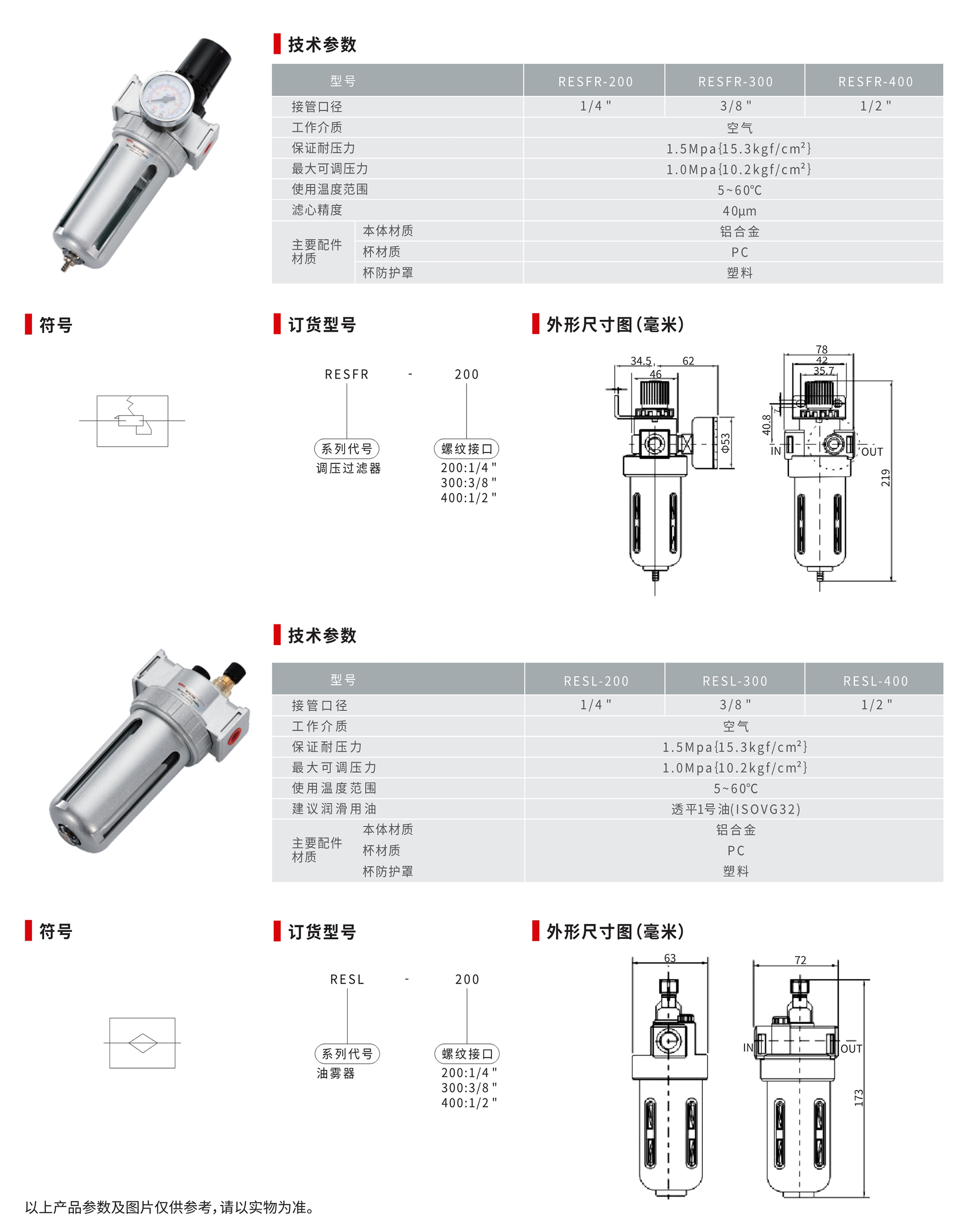 > RESFR系列調(diào)壓過濾器/RESL系列油霧器