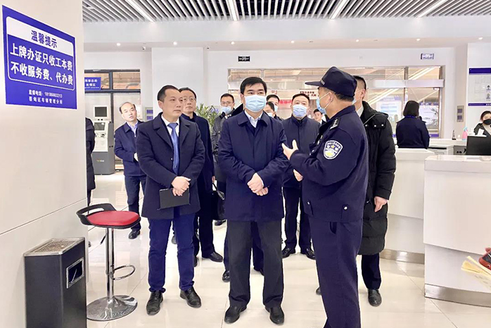 郝勝勇區(qū)長(zhǎng)一行考察調(diào)研人民汽車城·蔡甸區(qū)車管分所