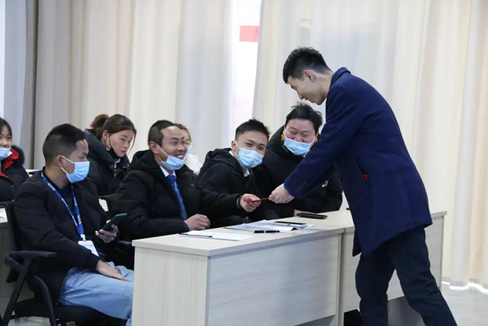 活動伊始,主持人做了慷慨激昂的致辭,并對所有到場各位銷雄表示熱烈歡迎與感謝。隨后,為了讓大家更加堅定目標與信心,工作人員從人民汽車城的城市占位、板塊利好、交通規(guī)劃、產品優(yōu)勢、投資價值以及直播電商新城未來發(fā)展?jié)摿ΓM行了詳細和介紹與講解,所有在場的銷雄一邊仔細聆聽,一邊認真記錄,在有疑問的地方置業(yè)顧問都給予詳實的解答,以便項目信息準確、高效傳遞客戶手中。