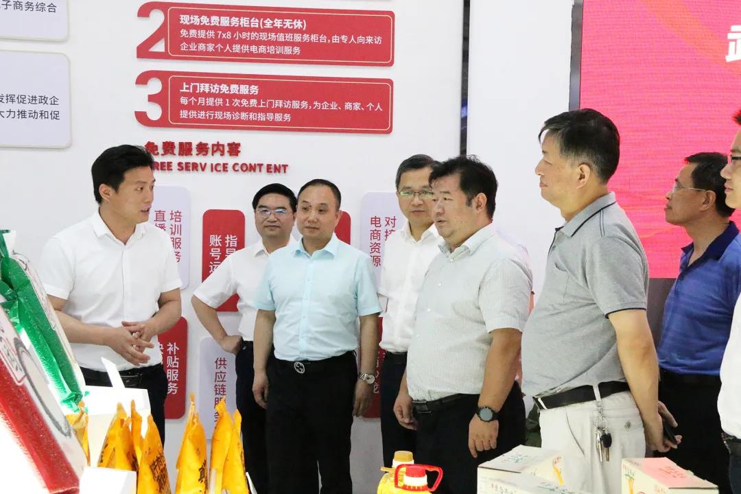 隨后,胡朝暉主席一行先后來到人民新谷直播電商新城直播間、商學(xué)院、產(chǎn)品供應(yīng)鏈進行實地參觀指導(dǎo),詳細了解人民新谷直播新城項目進程、運營模式、商家直播銷售情況,及蔡甸區(qū)農(nóng)副產(chǎn)品供應(yīng)鏈體系。并對直播電商配套、商家扶持培育、直播人才培養(yǎng)等方面工作給予高度評價。