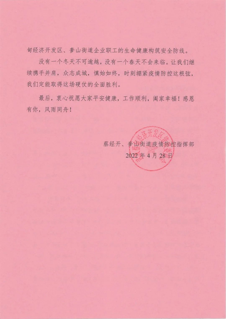 疫情防控 | 人民汽車城收到蔡經(jīng)開、奓山街道疫情防控指揮部感謝信