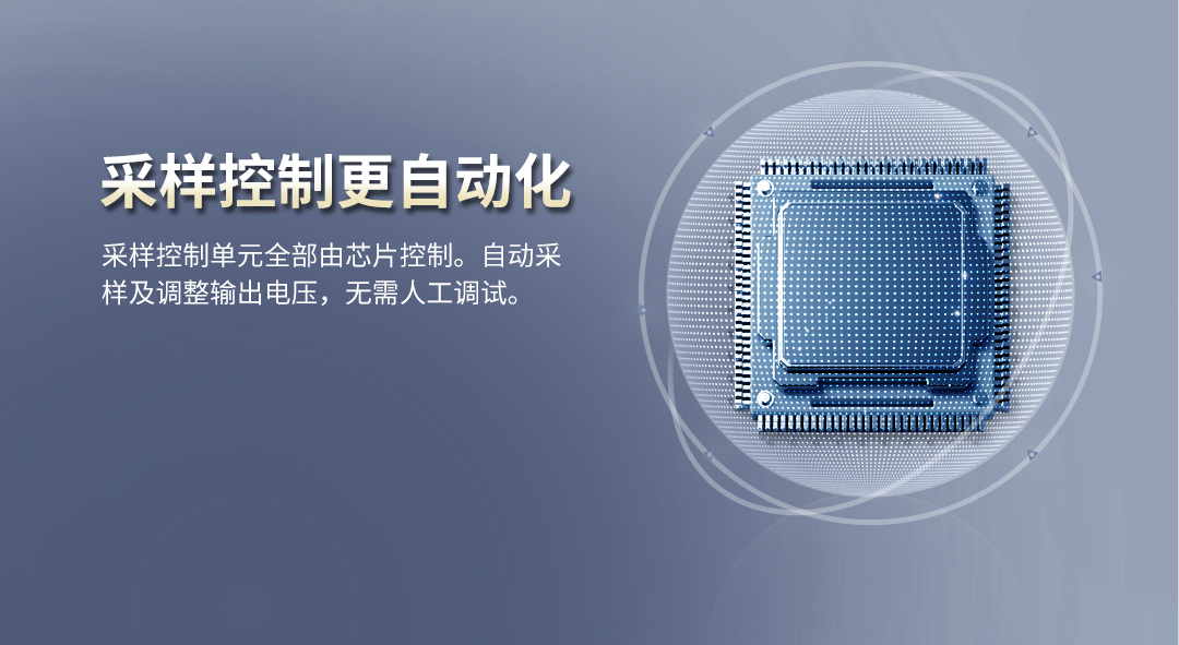 采樣控制單元全部由芯片控制。自動(dòng)采樣及調(diào)整輸出電壓,無(wú)需人工調(diào)試。