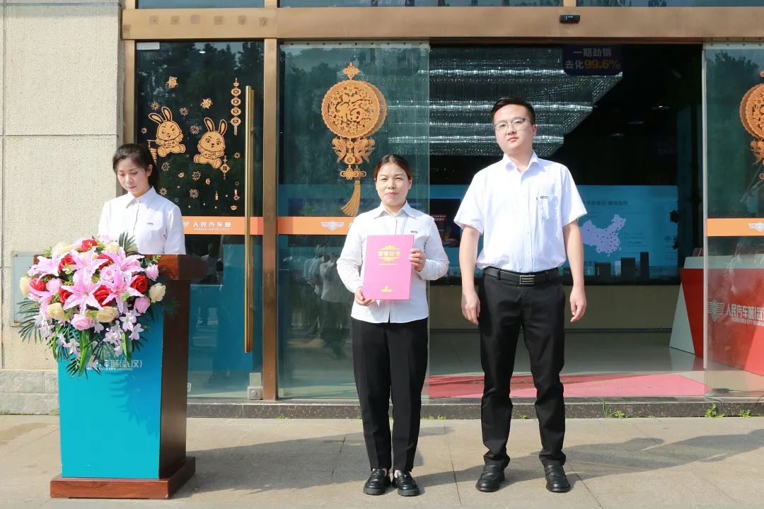 環(huán)?;顒又?,人民汽車城(武漢)、人民浩滿(湖北)公司共選出勤豐超市、恒通模具五金配件、北京迪蒙數(shù)控武漢體驗中心、城市便捷酒店(人民汽車城店)、湖北勛佳科技有限公司、武漢鋒刃工量具有限公司、武漢新得利叔公機(jī)電科技發(fā)展有限公司、武漢市昌藝文化發(fā)展有限公司、常福味道、武漢輝煌騰達(dá)潤滑油有限公司等共10家優(yōu)質(zhì)環(huán)保商戶。人民汽車城(武漢)總經(jīng)理李勇飛、人民浩滿(湖北)公司總經(jīng)理包毅為優(yōu)質(zhì)環(huán)保商戶頒發(fā)獎牌。
