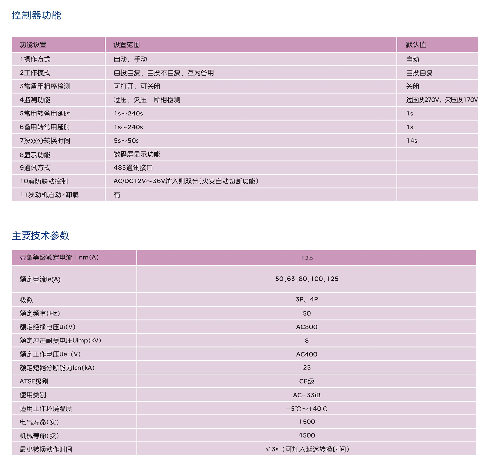 RDQH5Y雙電源自動(dòng)轉(zhuǎn)換開關(guān)(以下簡(jiǎn)稱雙電源),它適用于交流50Hz、額定工作電壓400V、額定工作電流50A至125A的供電系統(tǒng)??筛鶕?jù)需求或具體電路情況進(jìn)行兩路電源之間的切換選擇。本產(chǎn)品具有過(guò)載、短路、過(guò)電壓、欠電壓保護(hù)功能,同時(shí)還具備消防、雙分和輸出合閘信號(hào)功能。產(chǎn)品適用于高層樓宇、商場(chǎng)、銀行、醫(yī)療衛(wèi)生等不允許停電的重要場(chǎng)所。